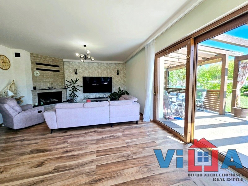 W całym domu zamontowano okna z roletami zewnętrznymi oraz moskitierami, co zwiększa zarówno komfort, jak i prywatność. Nieruchomość posiada również rozprowadzony system alarmowy oraz monitoring, co zapewnia wysoki poziom bezpieczeństwa.