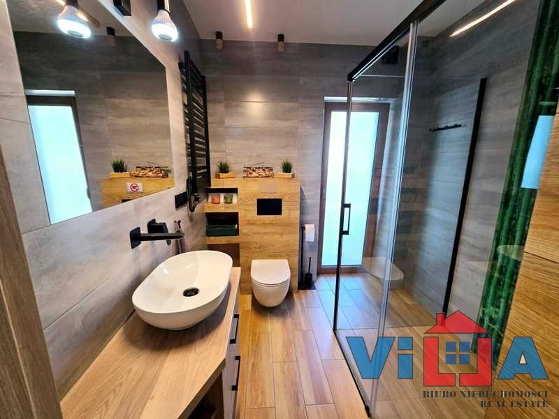 | Wyposażenie łazienki | kabina prysznicowa, lustro, natrysk z hydromasażem |
