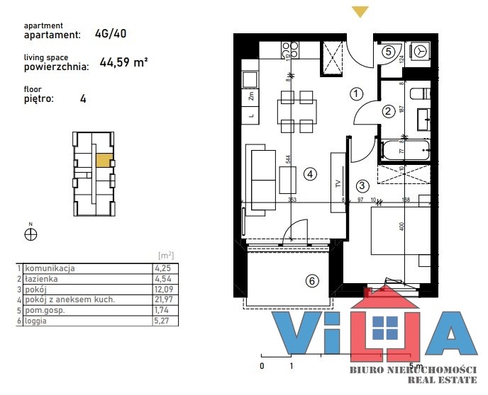 | Powierzchnia użytkowa [m2] | 44,59 m² |