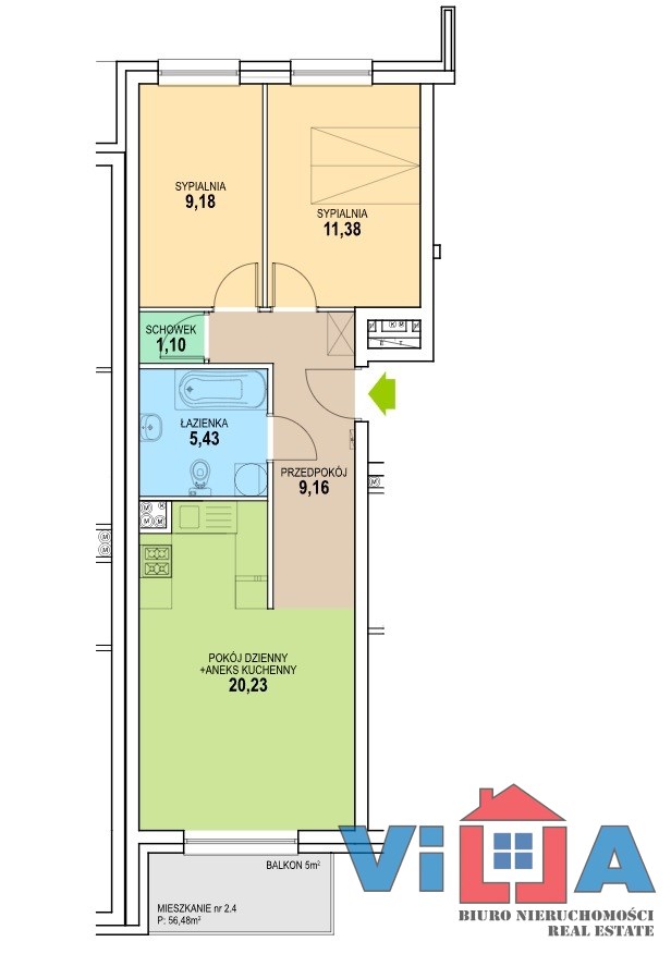 | Powierzchnia użytkowa [m2] | 56,75 m² |