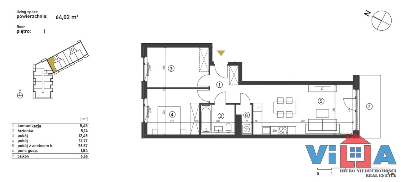 | Powierzchnia użytkowa [m2] | 64,02 m² |