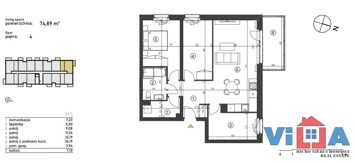 | Powierzchnia użytkowa [m2] | 74,89 m² |