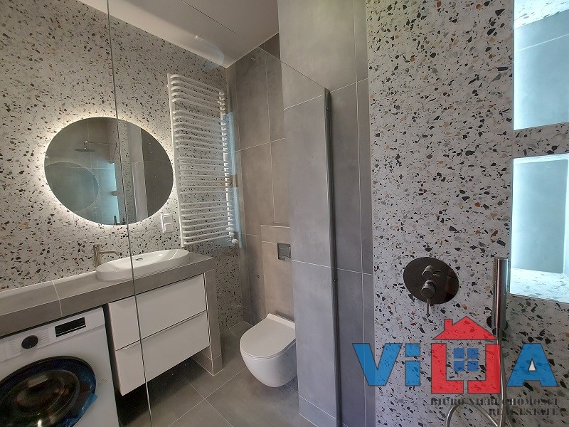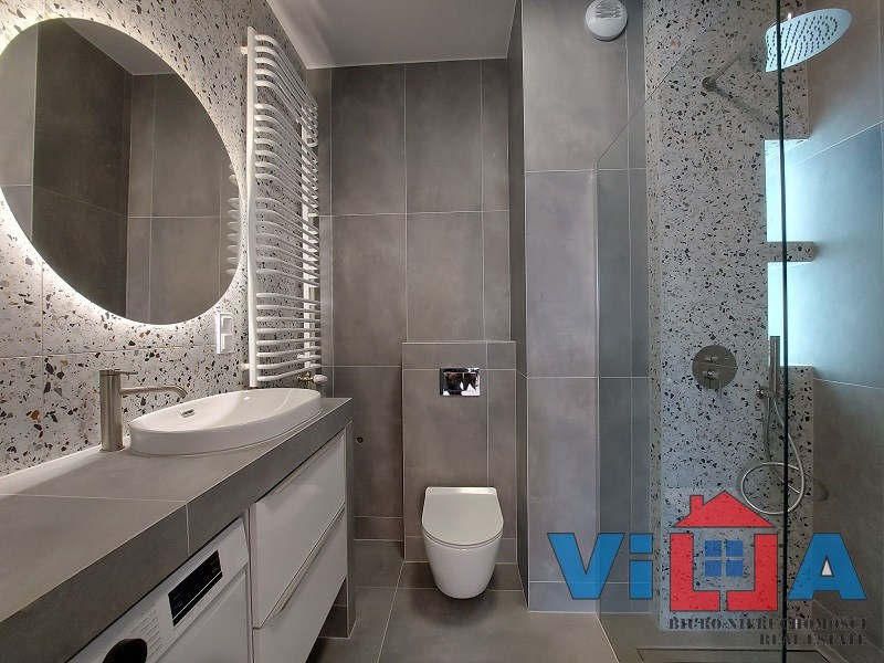 -łazienka z WC – nowoczesna, z nową pralką,